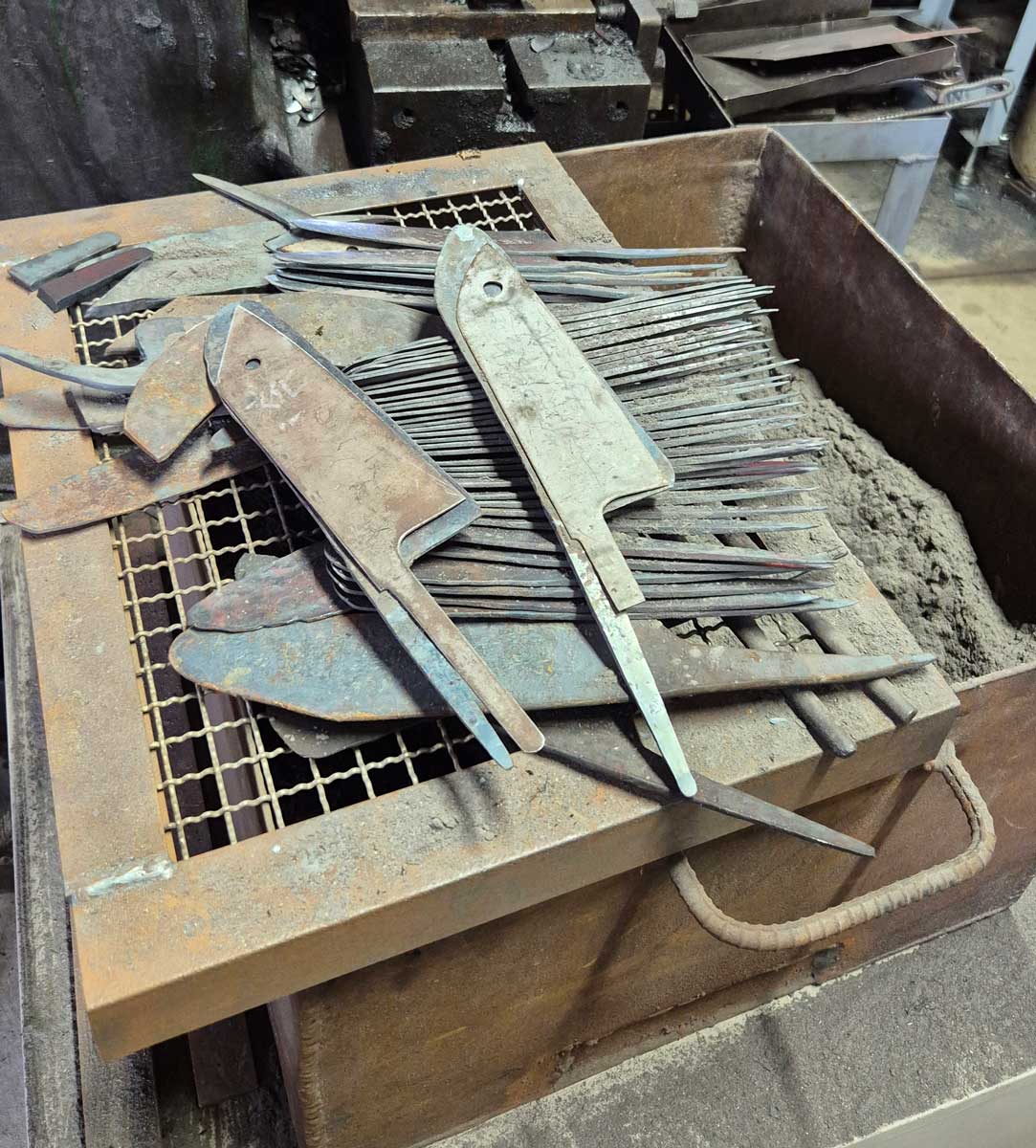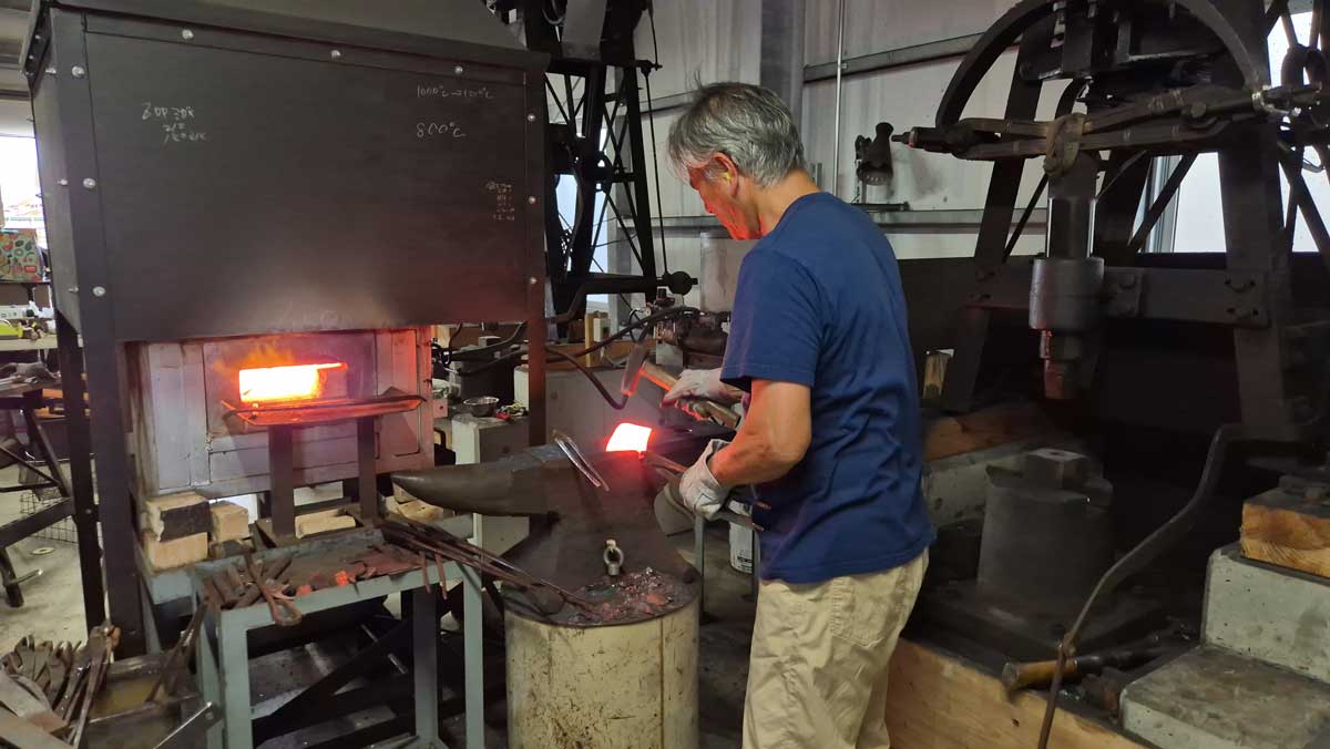 כשהגענו טאנאקה היה באמצע חישול מסורתי של סכינים מפלדות פחמן.