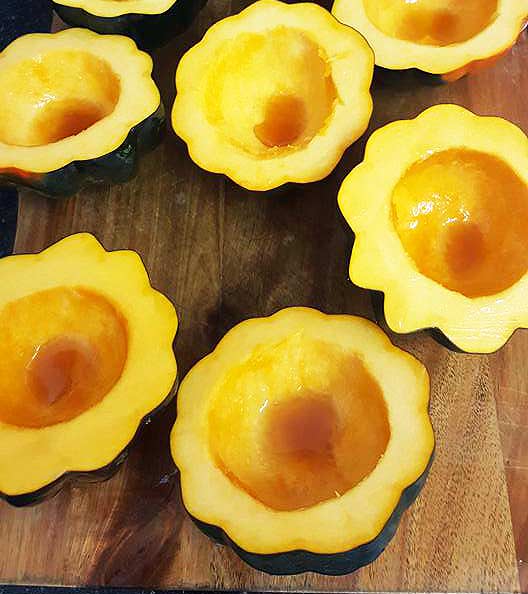 1. חוצים את הדלעות ומנקים את הגרעינים.