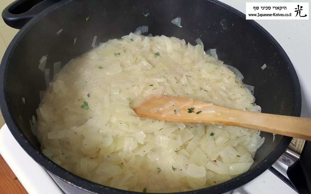 - להוסיף לבצל שתי כוסות יין לבן ולערבב אותו לעוד 5 דקות נוספות.