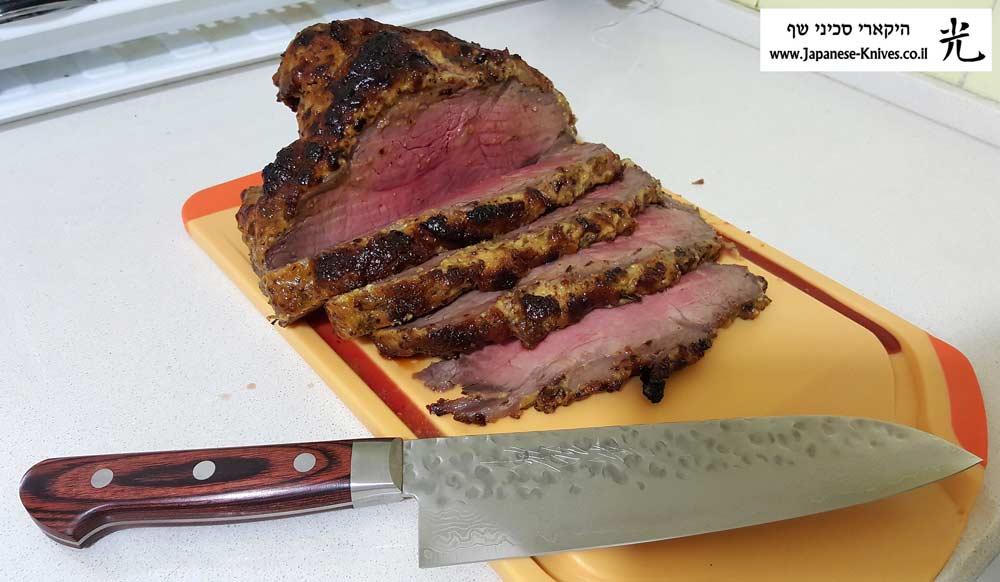 - פורסים לסטייקים בגודל אצבע, מומלץ להשתמש בסכין פריסת בשר או בסכין שף ארוך.